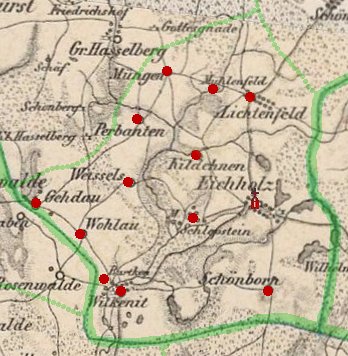 Die Kirchspielkarte ist derzeit noch nicht interaktiv. Sie gelangen zu den benachbarten Kirchspielen des Kreises Heiligenbeil über die Navigationsliste auf der linken Seite.