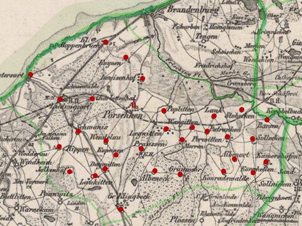 Die Kirchspielkarte ist derzeit noch nicht interaktiv. Sie gelangen zu den benachbarten Kirchspielen des Kreises Heiligenbeil über die Navigationsliste auf der linken Seite.