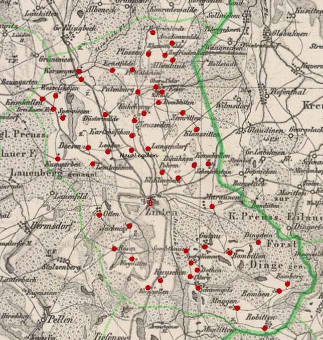 Die Kirchspielkarte ist derzeit noch nicht interaktiv. Sie gelangen zu den benachbarten Kirchspielen des Kreises Heiligenbeil über die Navigationsliste auf der linken Seite.
